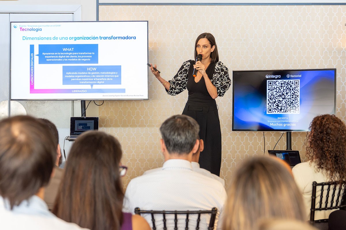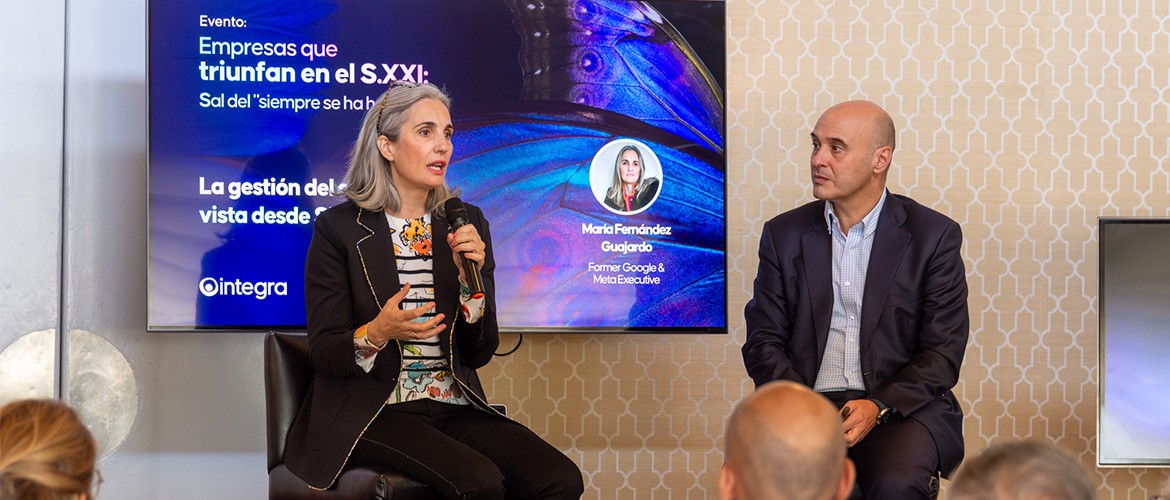 Uno de los momentos más destacados fue la conversación entre María Fernández Guajardo, exdirectiva de Google y Meta, y José Luis Latorre, consejero de Organización de Integra. Fernández Guajardo presentó su marco Inspirational Pragmatism y trasladó la visión de Silicon Valley sobre cómo afrontar la innovación y el cambio en un contexto acelerado por la inteligencia artificial.